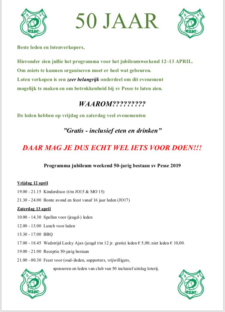 Daarnaast willen wij u nog even op de hoogte brengen van het programma tijdens ons 50 jarige jubileumweekend op 12 en 13 april.
